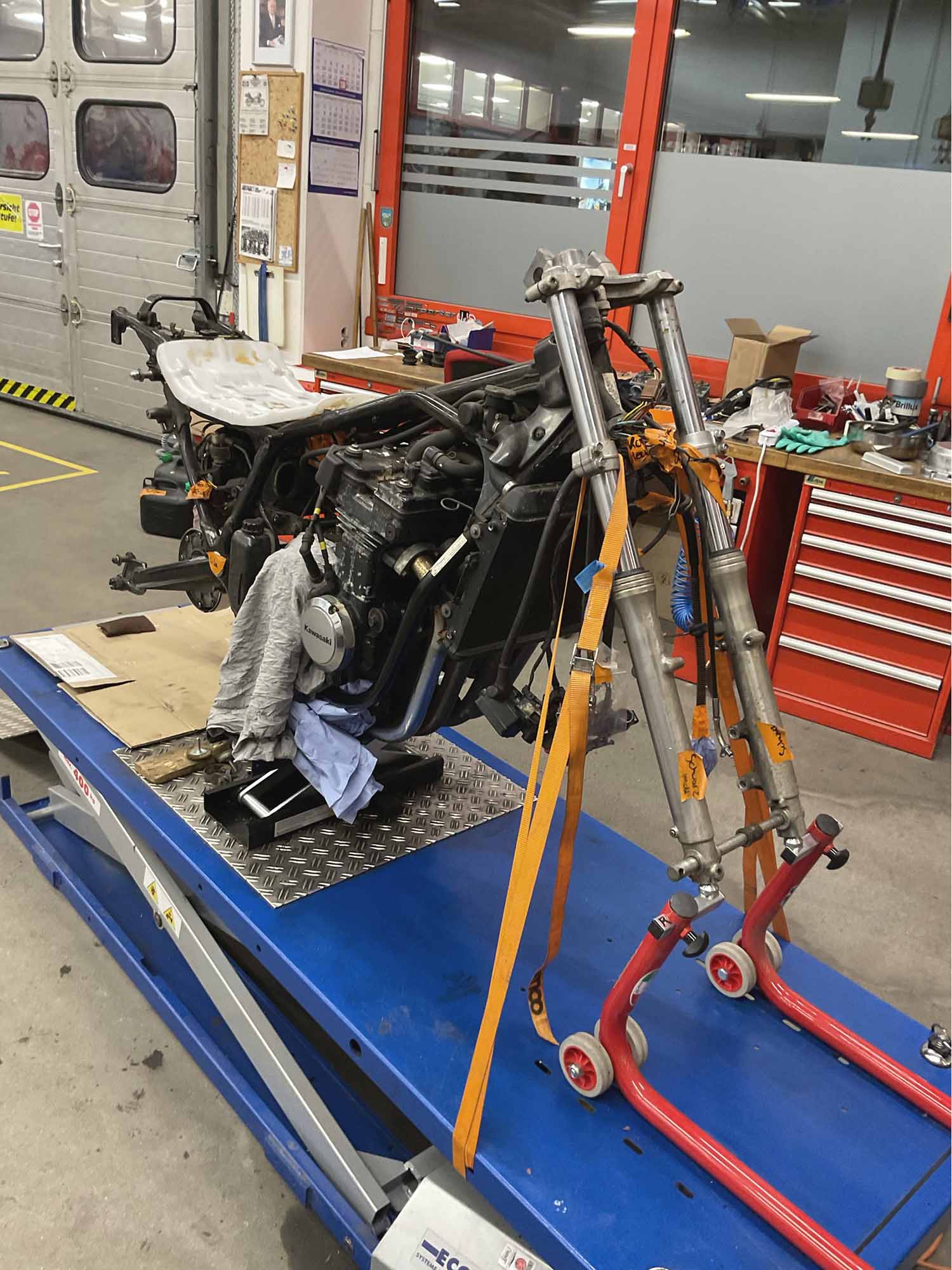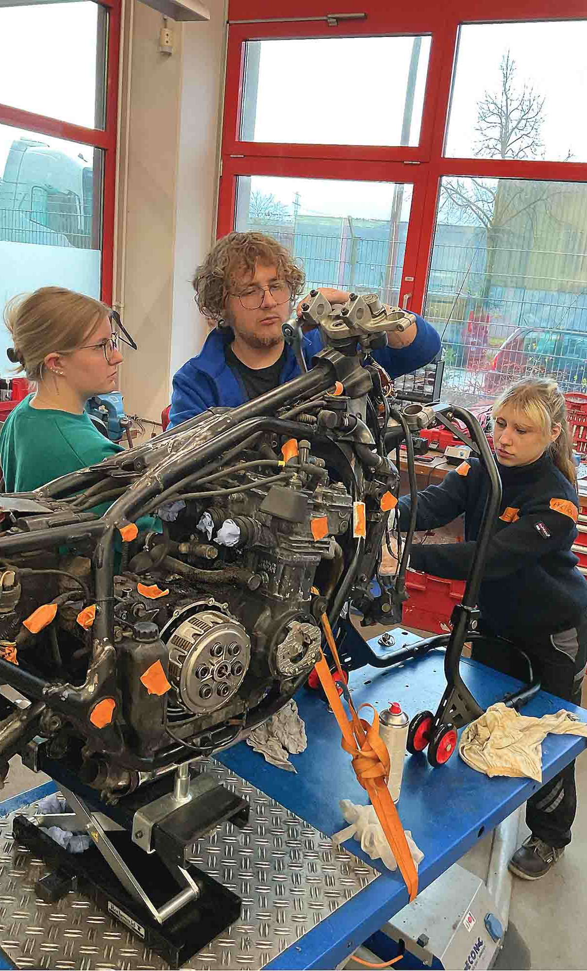 – that was the mission of eight motivated trainees. The dusty, rusty and long-disused Kawasaki ZL 600 was transformed into the Trainee Bike 2025. A motorbike that looked more like it belonged in a scrapyard than on the road. But that was precisely the challenge for our young trainees. From the outset, it was clear that the old chopper was to be turned into a modern bobber. Our trainee team had five days and a budget of €2,025 to create something completely new and unique from the old bike.