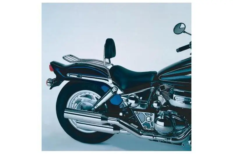 The solution for lone riders! You're guaranteed a more laid-back ride on motorbikes with a split seat if the pillion seat is replaced with this beautiful combination of Sissy Bar with back cushion and luggage rack. Available for many models.