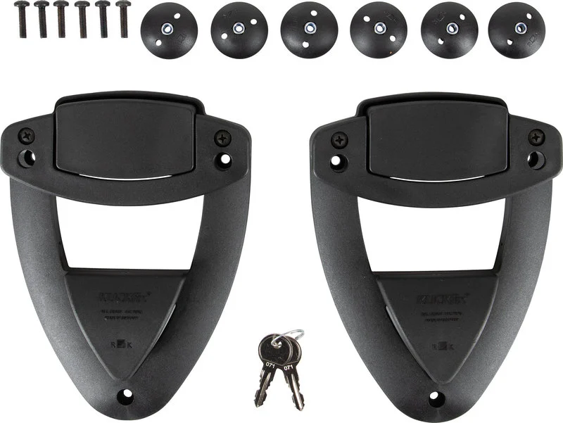 You need Longride *Replacement Clickfix* holders for saddlebags from Longride or another brand? Here you are. Here is your complete set. You can convert it in no time or equip saddlebags with a stable back wall with it. All the advantages the Klickfix mounting system has to offer can be used for you: easy attachment and removal of the bags, robust mounting, lockable.